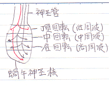 そして、ニューロンを交代させて中脳の下丘にやってきます。