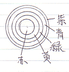 紫→青→緑→黄→橙→赤と反応層ができています。