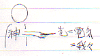 神の指から出た光=電気=我々という式は、