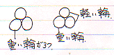 水蒸気(H2O)は、重い輪(O)1つと軽い輪(H)2つ。