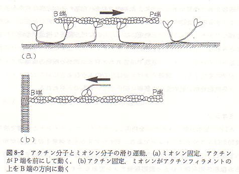 アクチン固定の場合は、ミオシンがアクチンフィラメントの上を