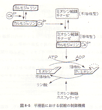 平滑筋のミオシンは、L鎖がリン酸化されると、活性化する。