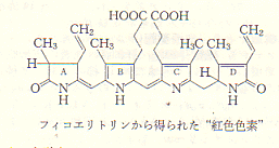 クロロフィールの緑色と、フィコシアニンの青色フィコエリトンの紅色の色素は、