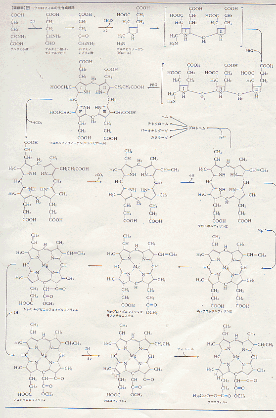 グルタミン酸から始まる一連のクロロフィール合成の工程!です。