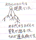 〔図〕(初めのDNAは健康でした。ある代からDNAに異変が起きました。それで、病気になりました。神様!それが遺伝病です。)