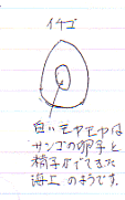 〔図〕(白いモヤモヤは、サンゴの卵が破れ卵子と精子が出てきた海上!のようです。)