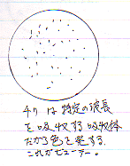 それが、別々の波長を吸収するもの!だから、色が生まれる!のだよ。