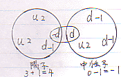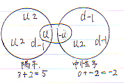 また、陽子の中にdが入って、中性子の方に-dが入っている状態の時は、陽子が2、中性子が1です。