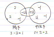 〔図〕陽子(3+2=5)、中性子(0+-2=-2)